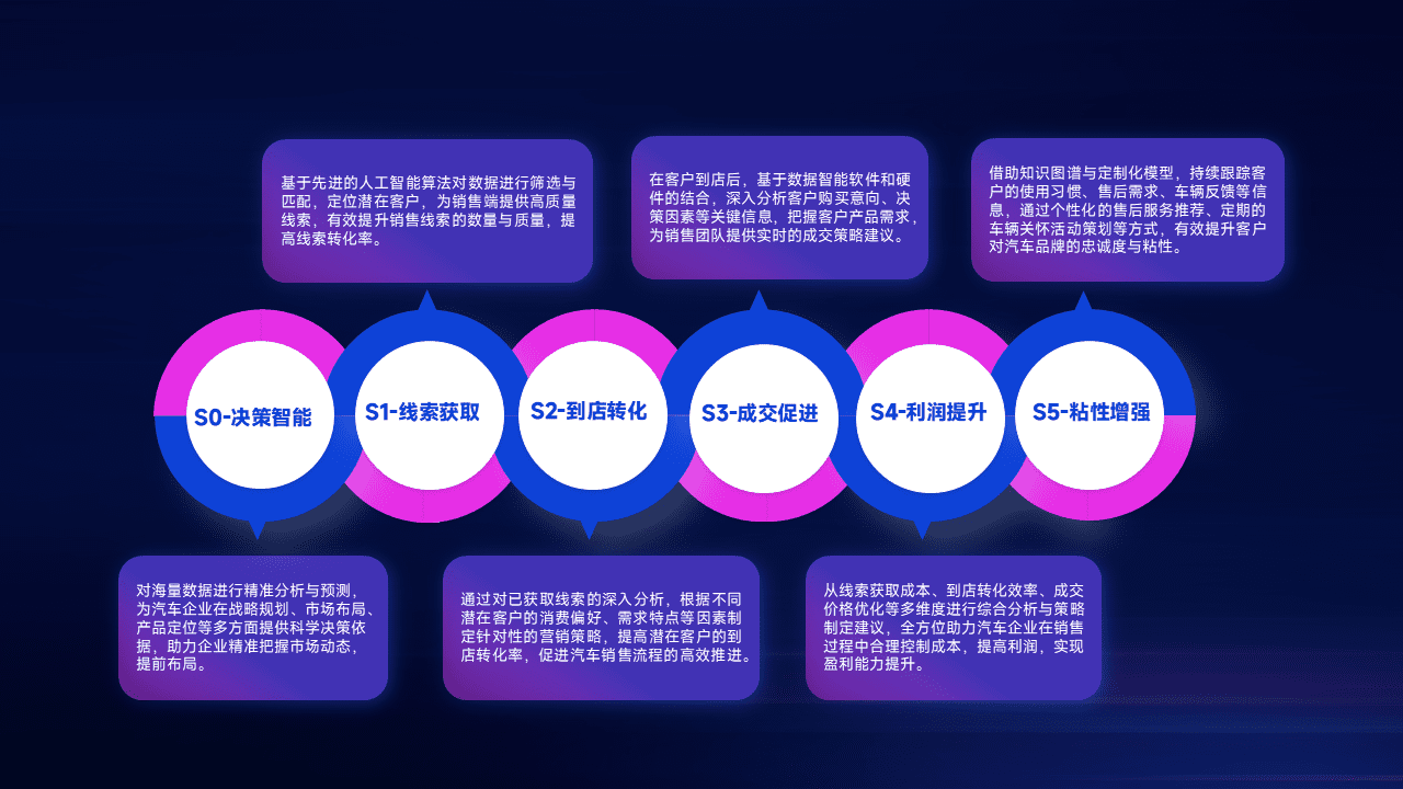 通过拓宽潜在客户来源、、、优化线索分配并提高到店转化率,,以增强销售效率。。。。同时,,,利用线索数据不断优化分析模型,,有效提升转化率,,,扩大营销影响力。。。